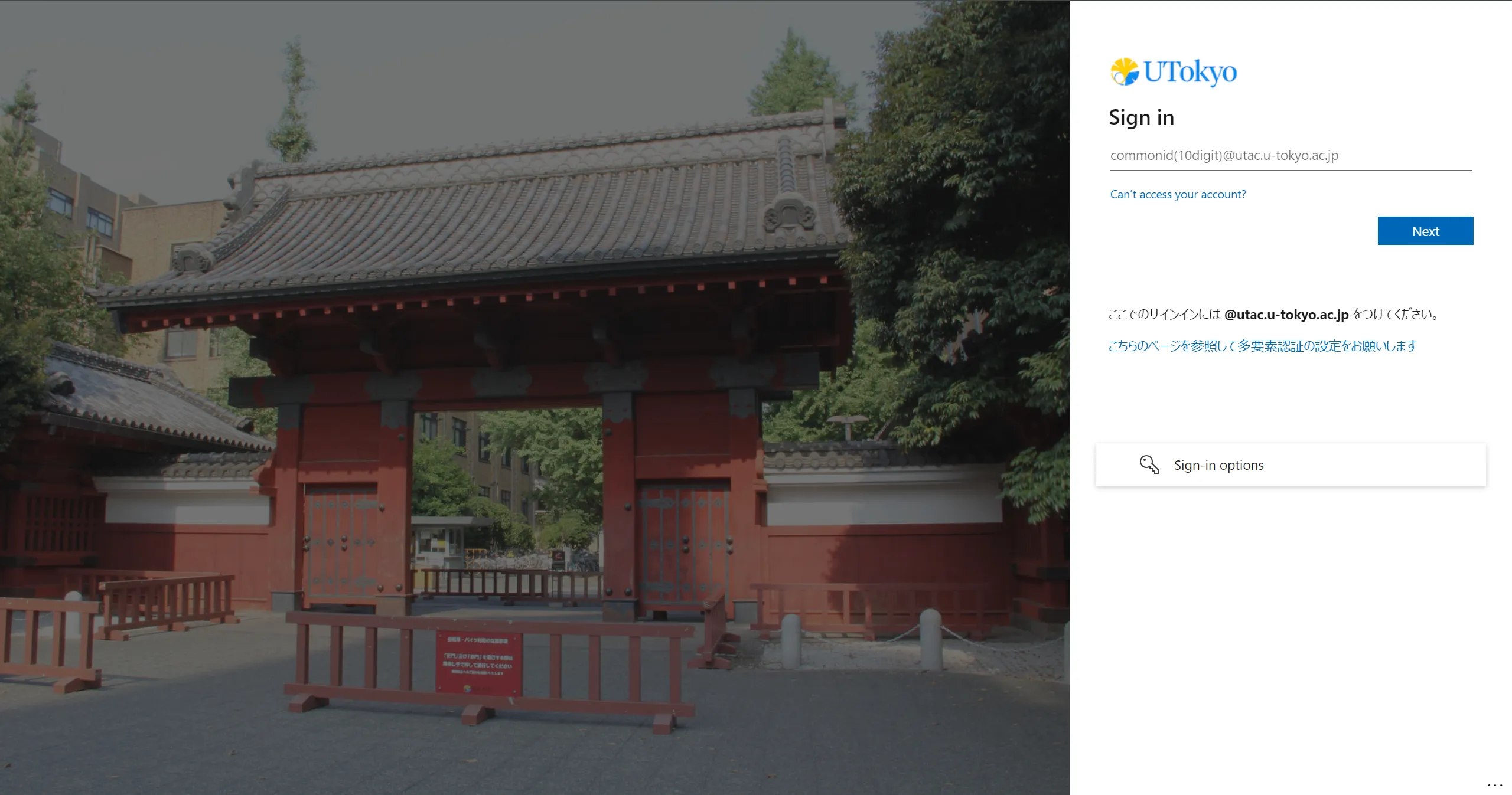 - Unless you have already signed in, the UTokyo Account sign-in page will be displayed. Please sign in.