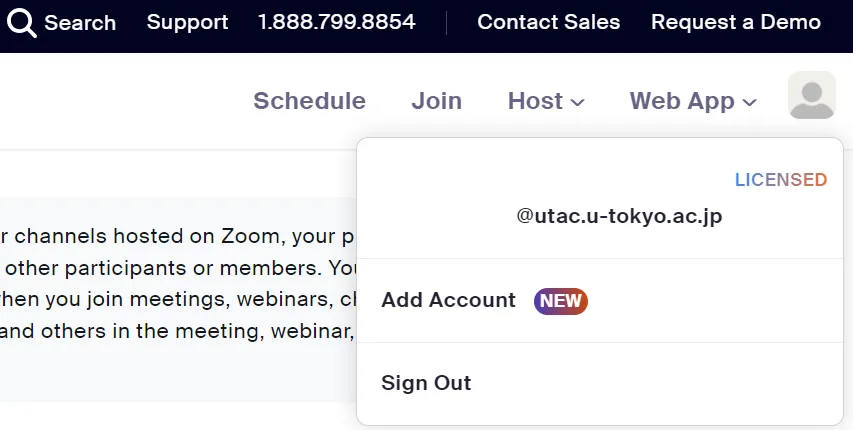 - If you see “Licensed” with your Common ID after clicking the icon in the top right corner of the Zoom settings page (a human silhouette or a profile picture that you have set up), you have successfully signed into Zoom with your UTokyo Account.