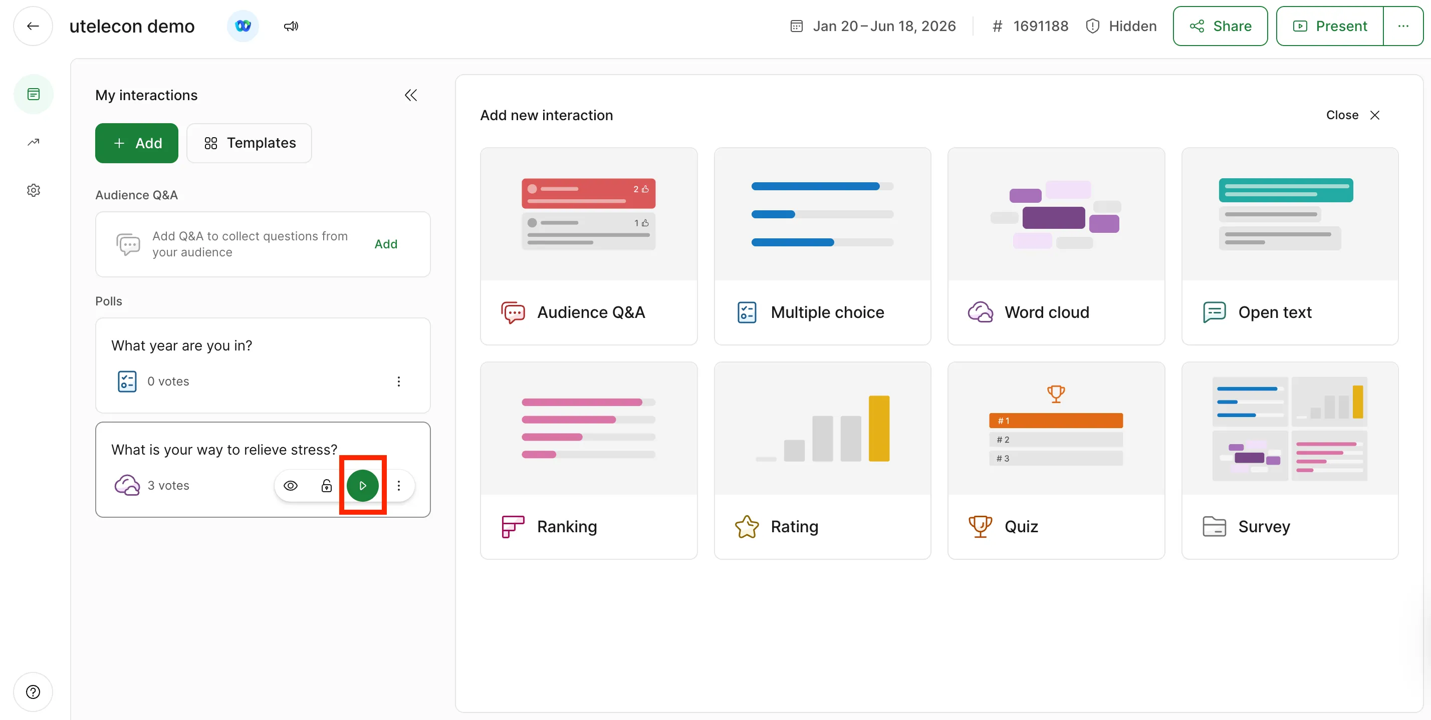 To create a Q&A, select “Audience Q&A” in the upper left corner of the screen or under “Add new interaction”.