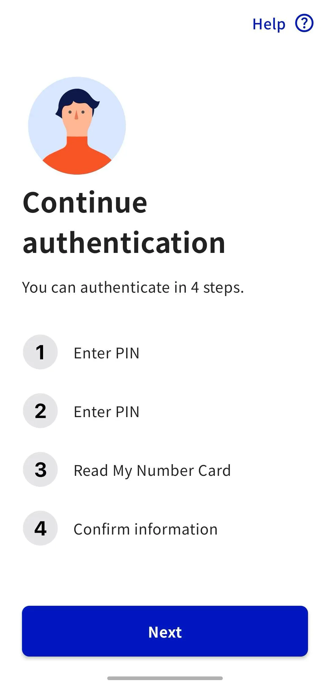 Tap “Next” to proceed with the authentication steps.