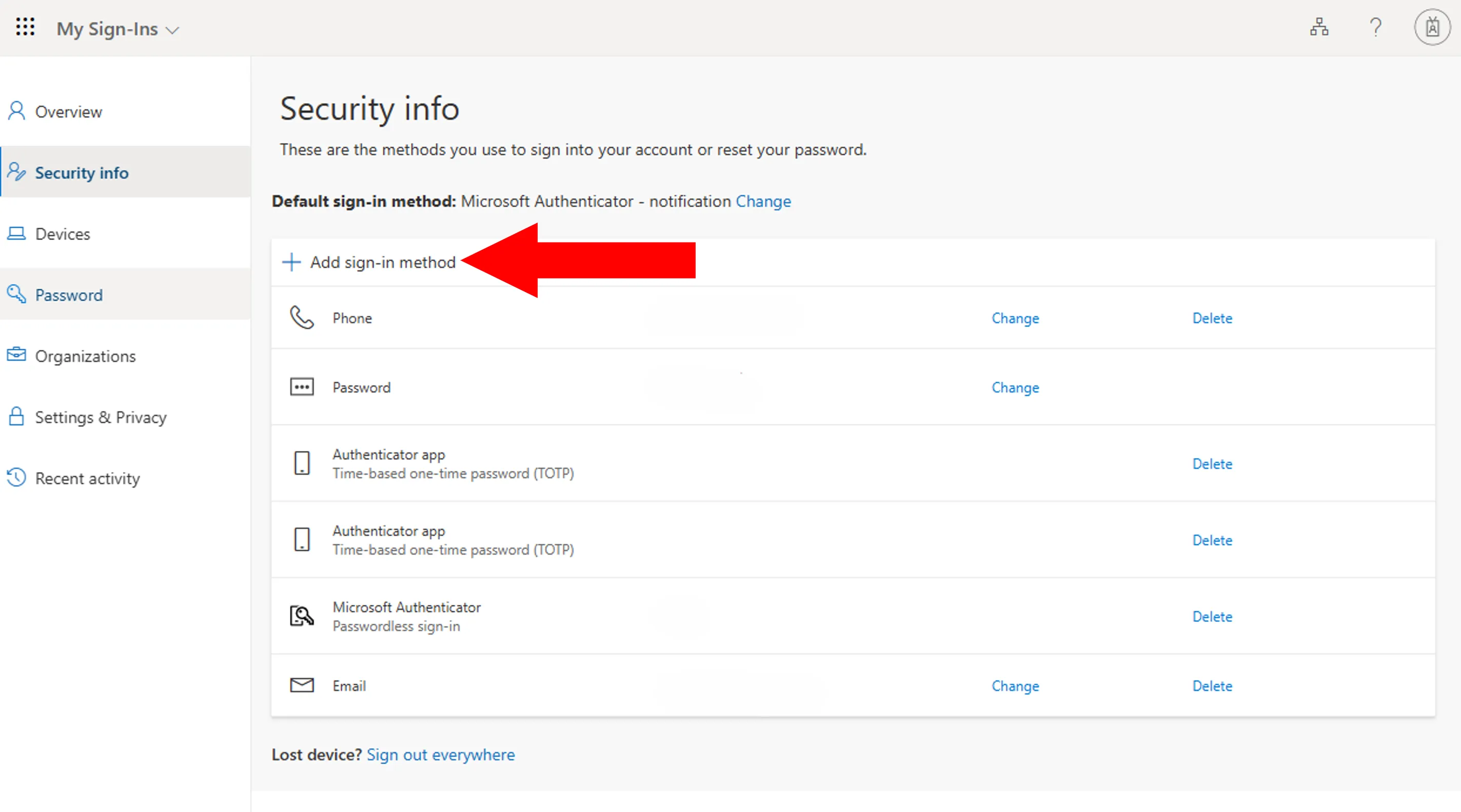 - If you are then taken to the “Security info” page, you have successfully signed in.