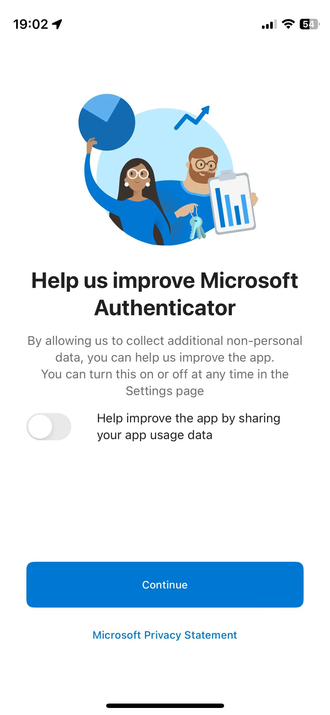 - Open the Microsoft Authenticator app on your smartphone. If you open the app for the first time after installation, you will be asked to accept privacy policy and to select whether to share your app usage data, so follow the instructions.