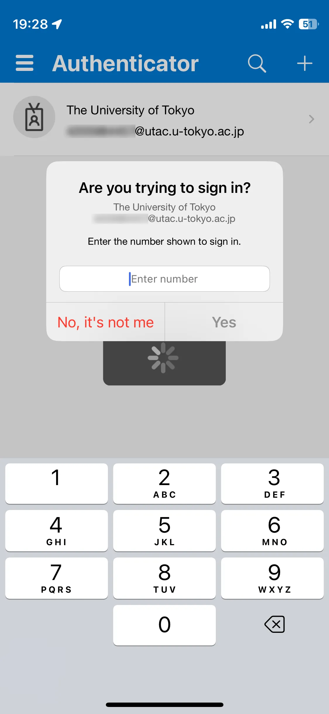 Two-digit number is shown on “Let’s try it out” screen, and at the same time a prompt opens on Microsoft Authenticator app on your smartphone. Input the number to the prompt and tap “Yes”.