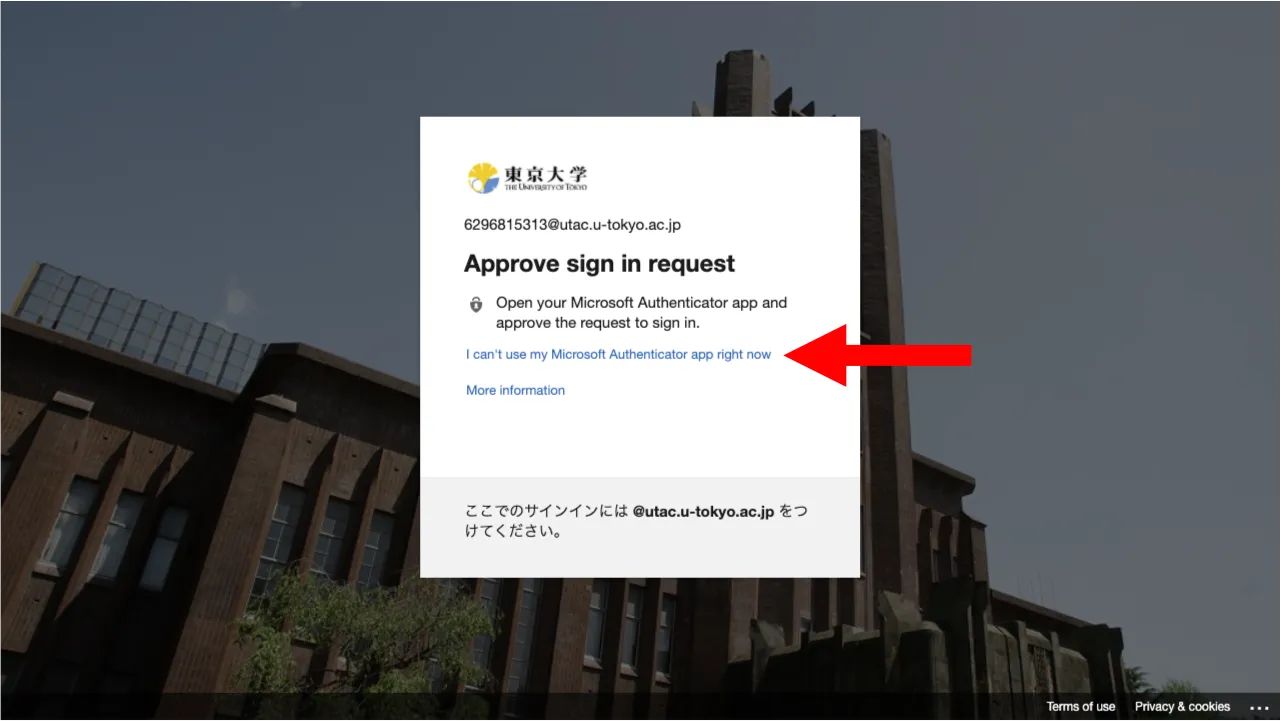*About the “I can’t use my Microsoft Authenticator app right now” message