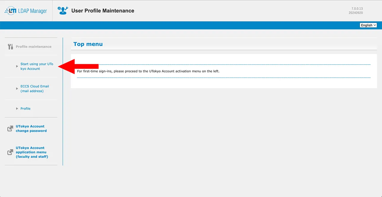 - Access the UTokyo Account User Menu.