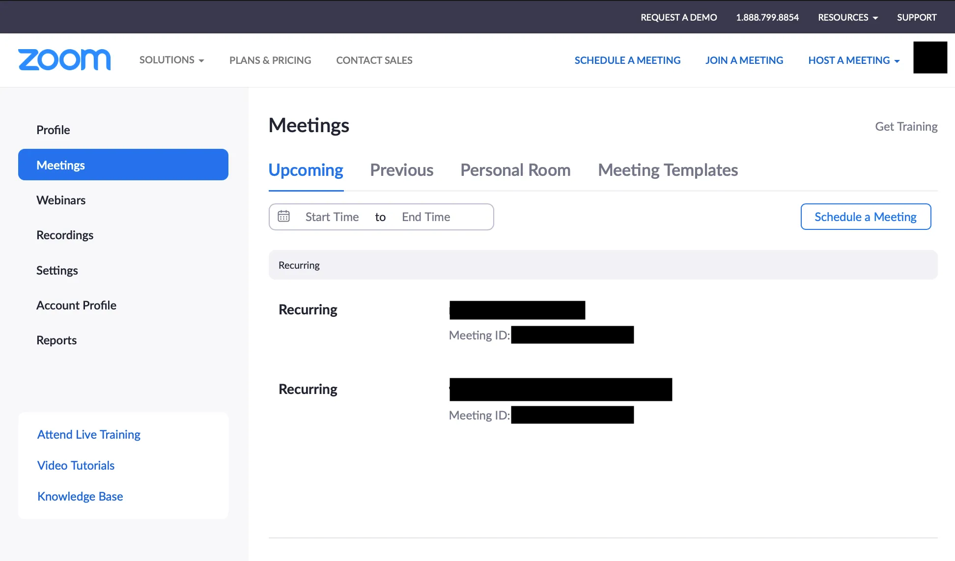 Open the Zoom “Meetings” page on your web browser.