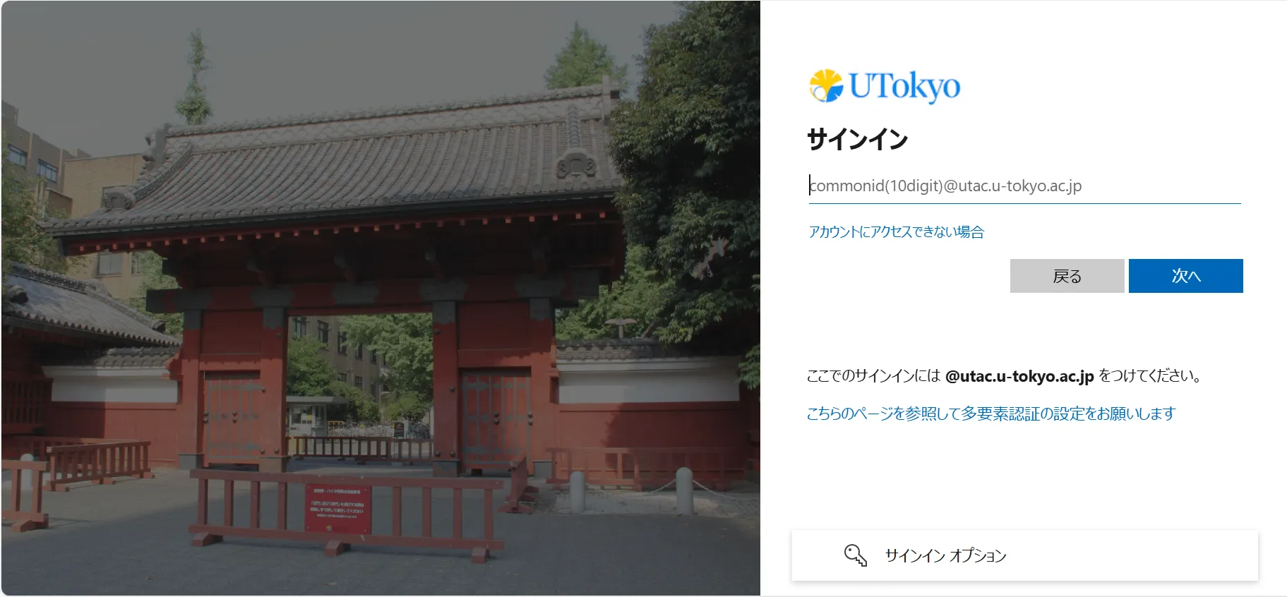 - 既にUTokyo Accountにサインイン済みの場合を除き,UTokyo Accountのサインイン画面が表示されるので,サインインしてください.
