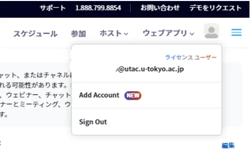 - サインインが完了します.右上のアイコン(人のマーク,または設定した自分のアイコン)を押したときに,自分のUTokyo Accountとともに「ライセンス ユーザー」と表示されれば,OKです.